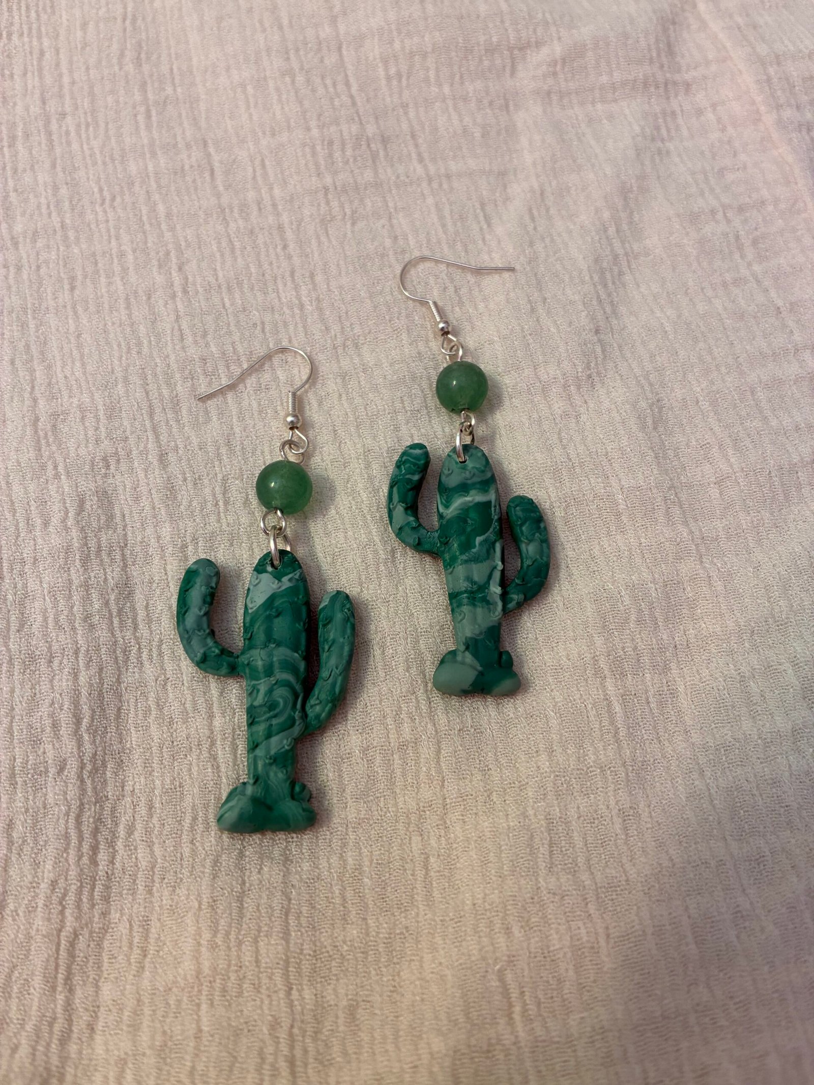 Mottled green and white clay make up these cute cactus earrings.